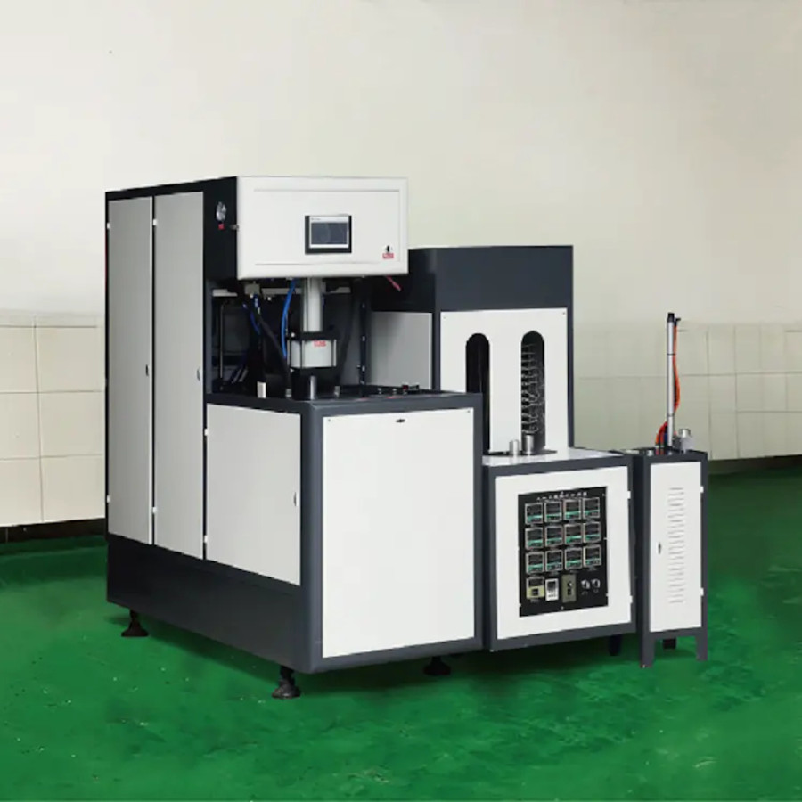 Універсальна напівавтоматична видувна машина, призначена для виготовлення ПЕТ пляшок об’ємом до 20 літрів, які можуть бути використані для розливу мінеральної газованої та негазованої води, пива, квасу, олії, побутової, автомобільної хімії.